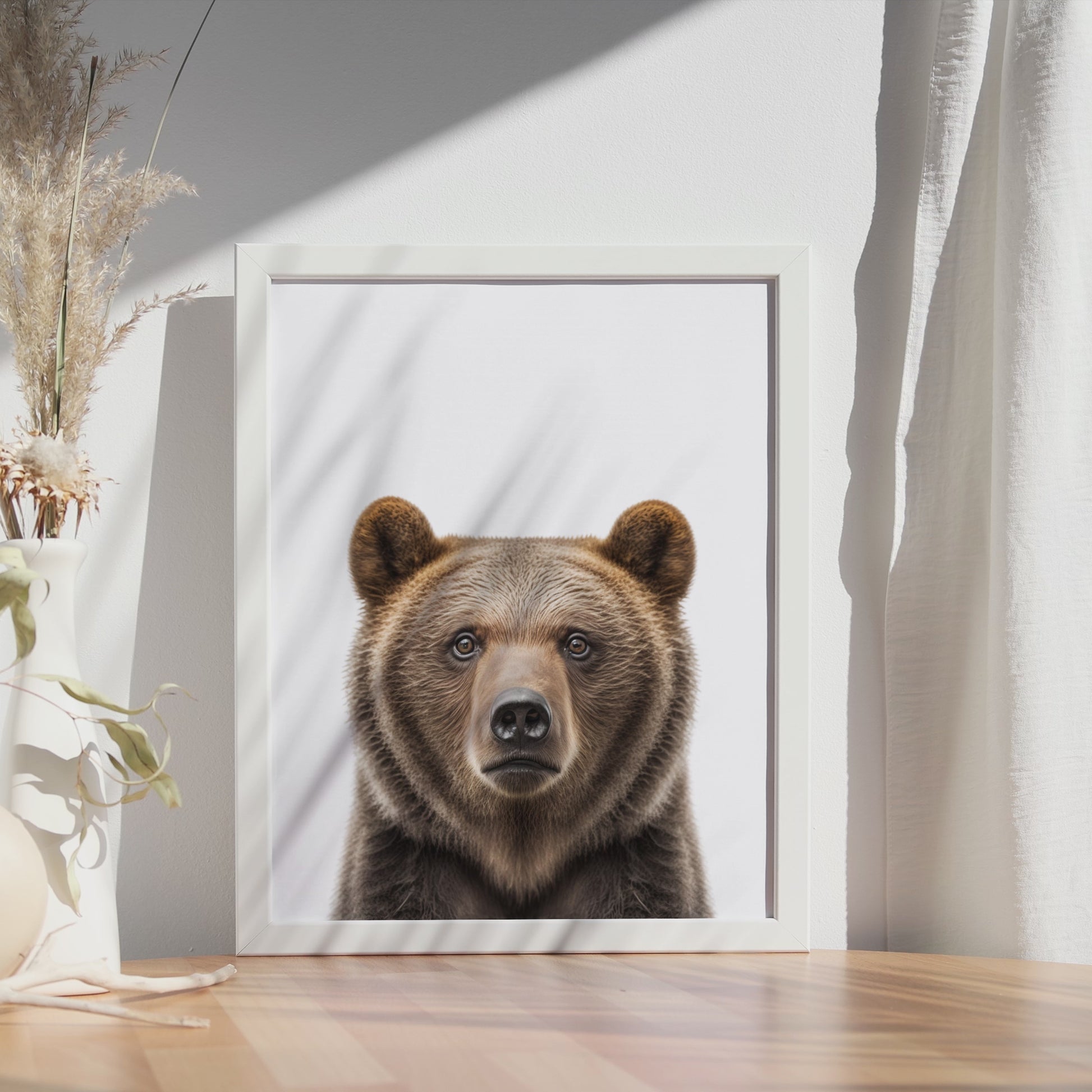 Immerse yourself in the untouched forests of Europe and North America with our brown bear poster. The powerful appearance and deep intensity in the bear's eyes will give any room a wilderness touch. A real highlight for nature and animal lovers.